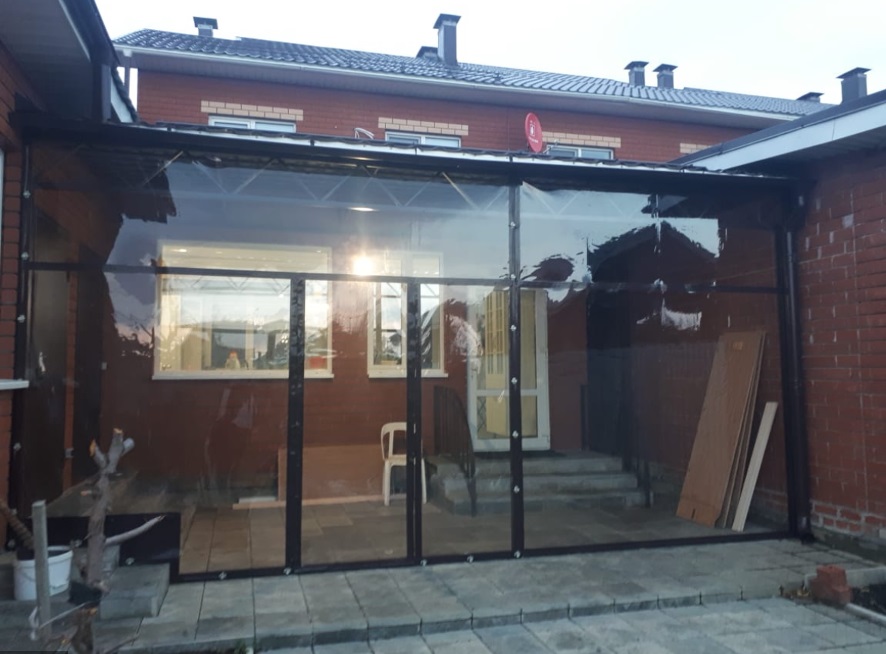Мягкие окна можно использовать круглый год. Благодаря такой установке, создаются комфортные условия в летнее время, когда идет дождь. Кроме дождя и ветра, пленка может защитить конструкцию от снега в зимнее время.