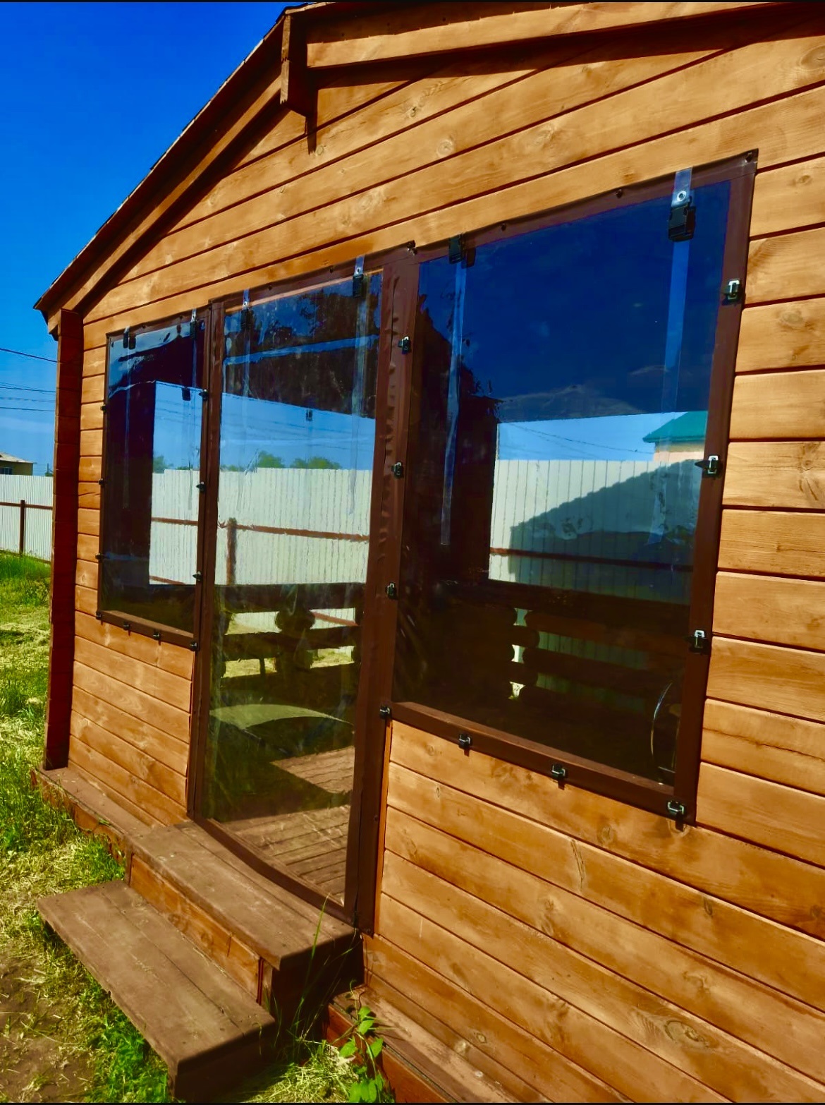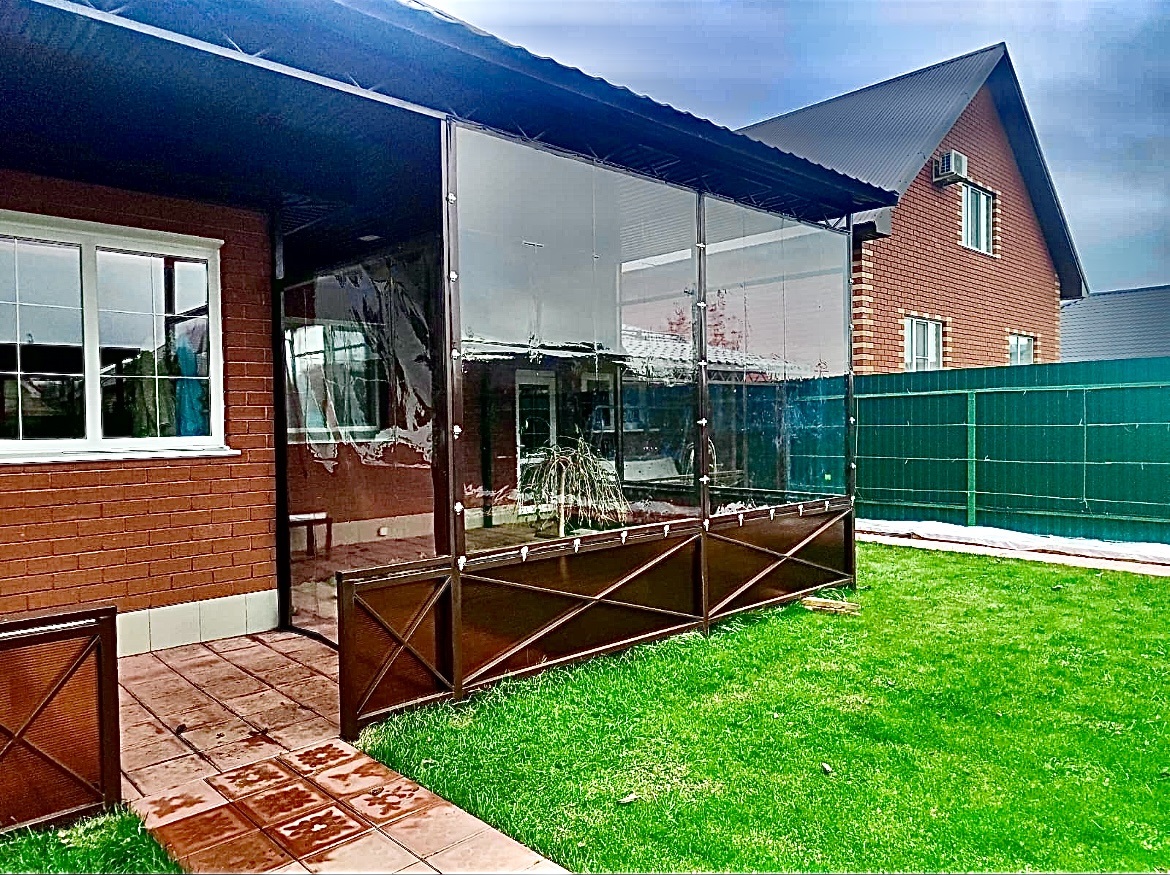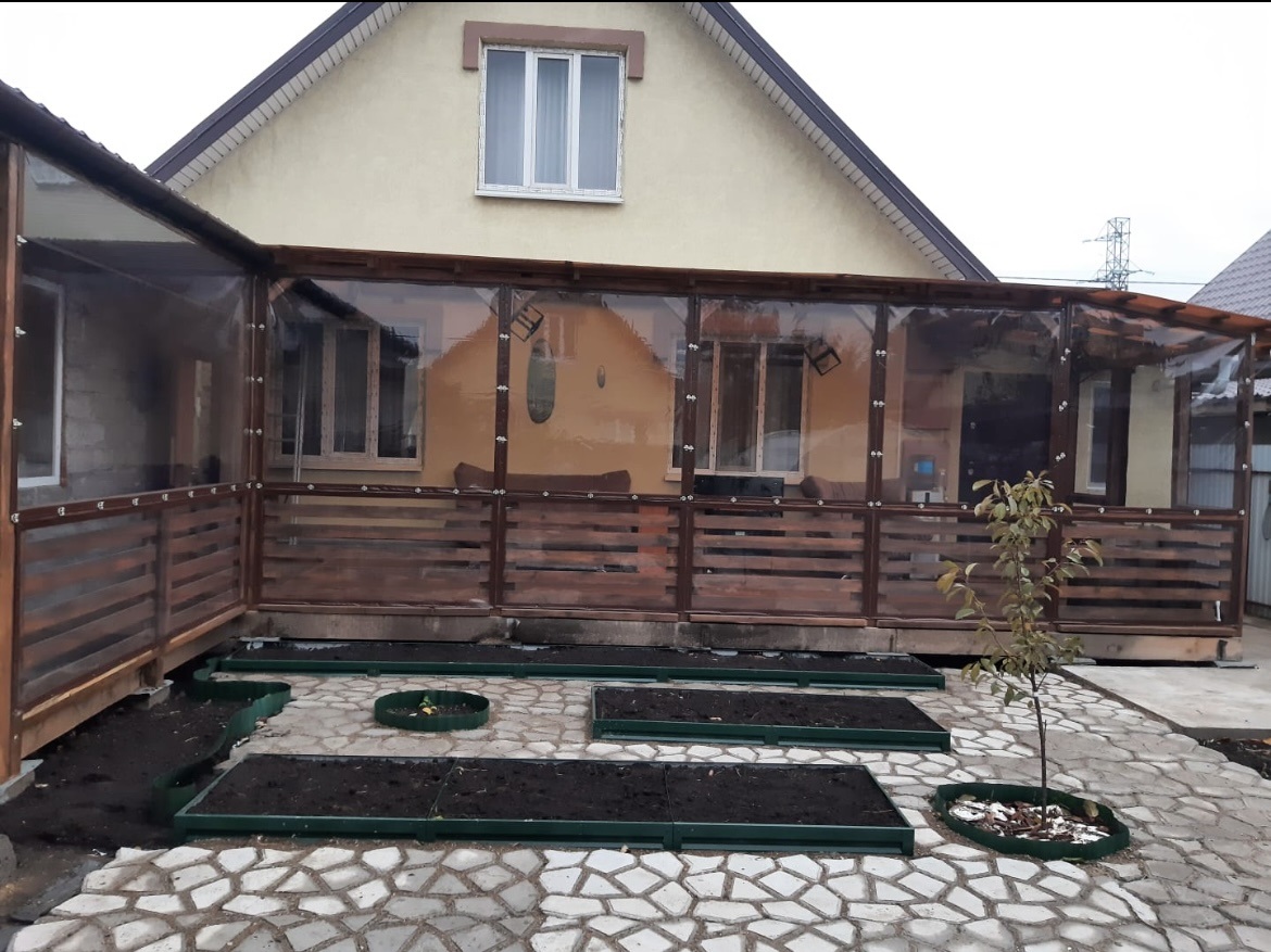 Мягкие окна можно использовать круглый год. Благодаря такой установке, создаются комфортные условия в летнее время, когда идет дождь. Кроме дождя и ветра, пленка может защитить конструкцию от снега в зимнее время.