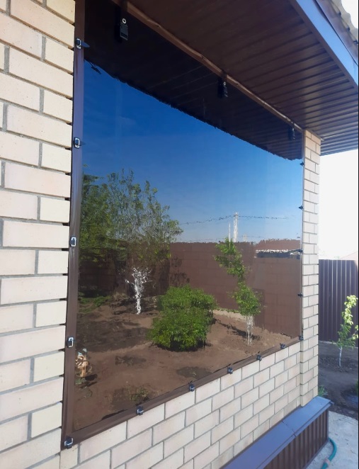 Качество мягкого окна удается достичь благодаря хорошей фурнитуры, которая обеспечивает плотное крепление конструкции к поверхности строения и длительную эксплуатацию гибких окон.