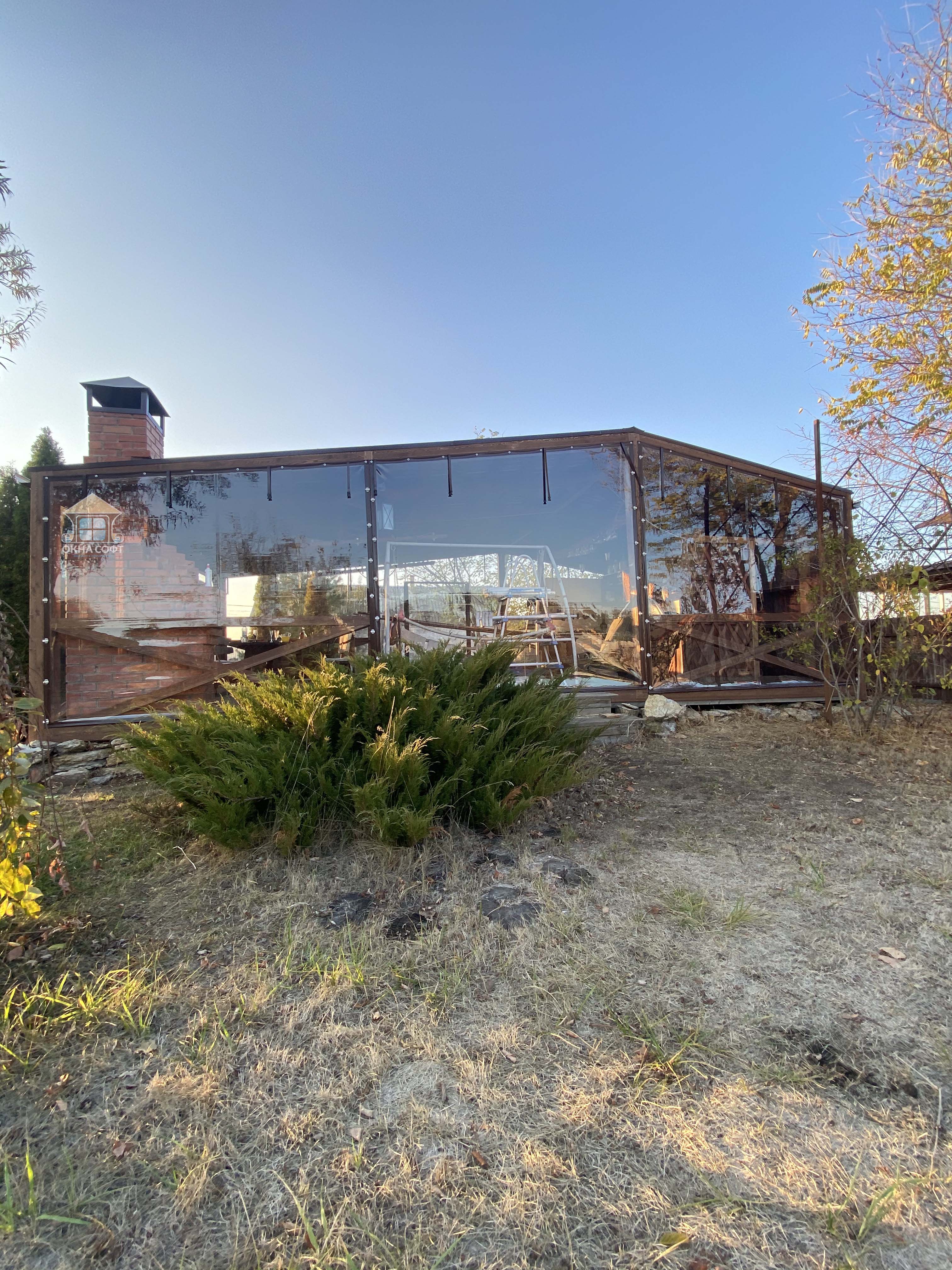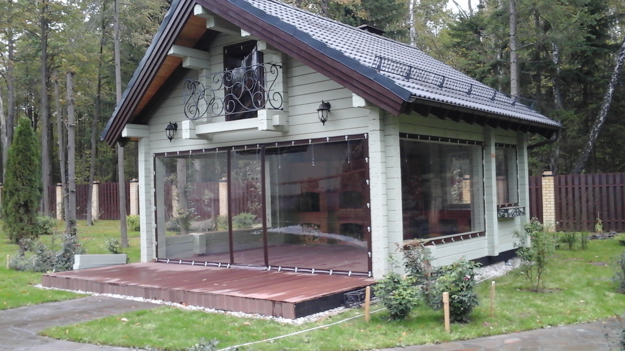 Вам очень понравится. Мягкие окна всегда вписываются в любое строения, нужно просто выбрать окантовку подходящего цвета. Посмотрите на какие красивые строения мы монтировали мягкие окна, вы можете сказать, что это не эстетично? И учитывайте тот факт, что мягкие окна легко монтируются и демонтируются, с остеклением так не получится - стекла вы не снимете за 30 минут.